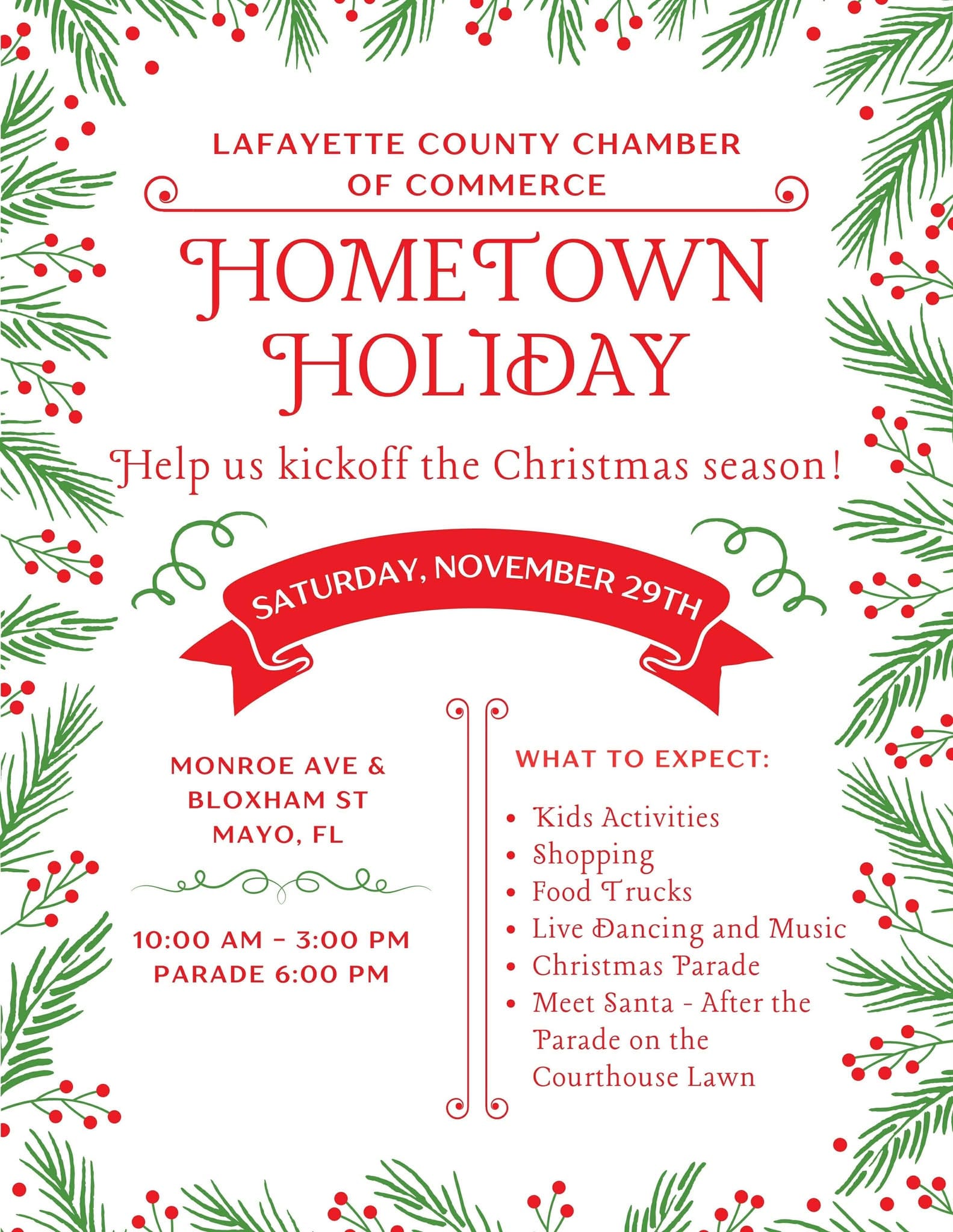 MAYO, FL — The Christmas season is officially set to begin in Lafayette County as the Lafayette County Chamber of Commerce hosts its annual "Hometown Holiday" celebration on Saturday, November 29th. The event promises a day full of family-friendly activities, culminating in the much-anticipated Christmas Parade.